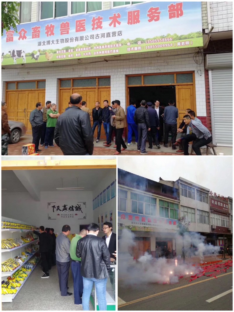 2019年4月22日,湖北博大生物股份有限公司古河直營店經過精心籌備隆重開業!開業慶典當天公司舉行了開業酬賓活動,吸引了全椒縣養殖戶的廣泛關注,當天現金訂貨突破10萬元!