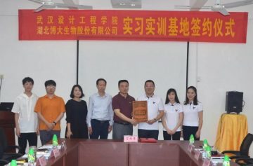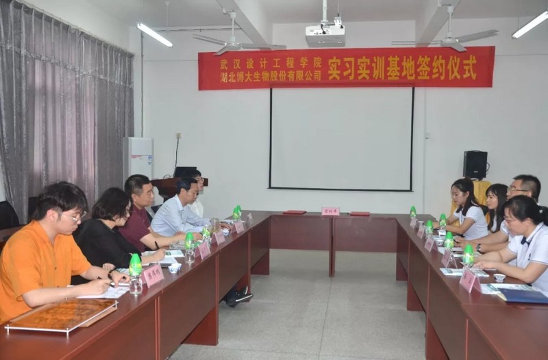 為了加快產學研合作,推進高素質應用型人才培養。5月19日上午,武漢設計工程學院與湖北博大生物股份有限公司的校企合作簽約授牌儀式在我公司會議室舉行。武漢設計工程學院常務副院長龔少平、湖北博大董事長孫國平等負責人出席了本次簽約儀式。