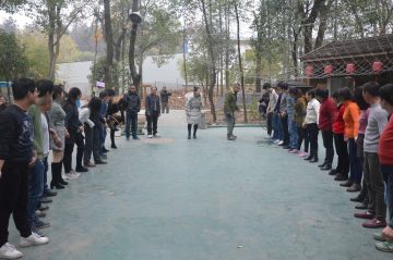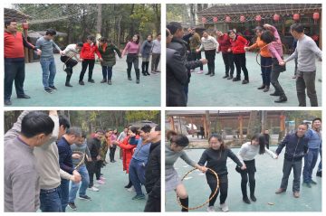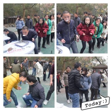 燒烤結束后,時間也到了下午,該好好放松一下心情啦!主持人召集大家來到小廣場,開始了游戲互動時間。一共分為兩個隊:“一流品牌”隊和“百年博大”隊,兩組隊員準備就緒,精彩的游戲即將拉開序幕……