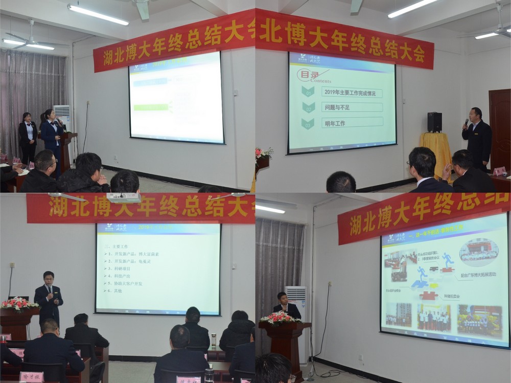 風云變幻的農牧業2019年過去了,作為行業一份子的湖北博大生物股份有限公司在元月15日~16日召開了2019年度總結大會。公司管理層以及各部門負責人在會上對2019年的工作進行了科學精準的分析,并對2020年的各項工作進行了規劃。最后,公司董事長孫國平先生作了題為《把握歷史機遇,工作再上新臺階》的大會報告,從戰略上指導了公司的發展思路。