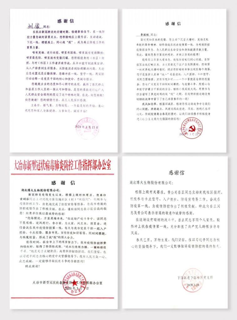 連日來,公司不斷收到各地黨組織、新冠肺炎疫情防控指揮部寄來的感謝信,感謝公司支部黨員們在疫情防控期間,用實際行動詮釋一名黨員的初心和使命、忠誠與擔當。